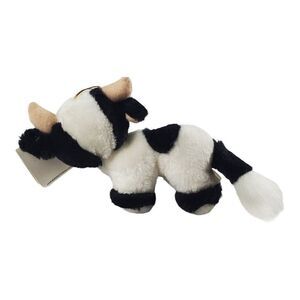 Jane Manuf Corp. Cow Plush White Black Stuffed Animal Soft Toy 5” Mini Bull New