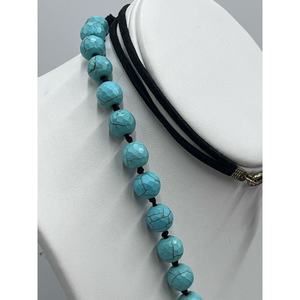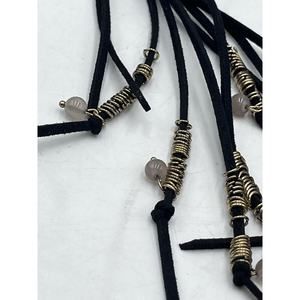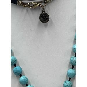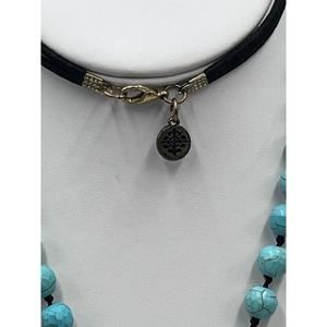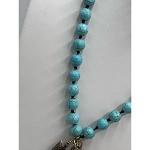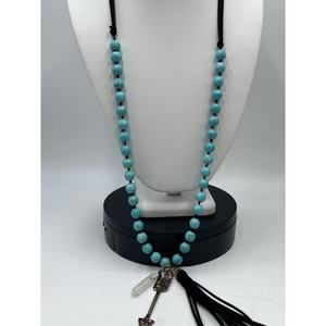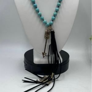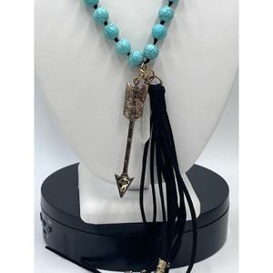 Jane Marie Hand Knotted Black leather Tassel Blue Faux Turquoise Arrow Pendant