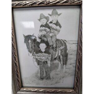 Jane McClure Jane's Prints Brothers Horse Pony Boys Cowboys Framed Print