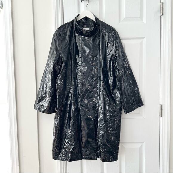 Jane Post Black Patent Shiny Boxy Rain Coat Poncho Jacket Snap Button Back 1X
