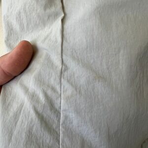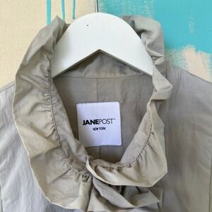 Jane Post New York Jacket Gray Ruffled Hooded Nylon Raincoat Women's M FLAWS