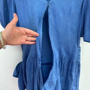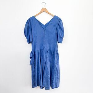 Jane Schaffhausen Belle France Women’s 80s Jacquard Drop Waist Steel Cornflower Blue Dress