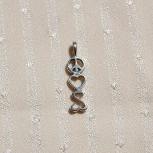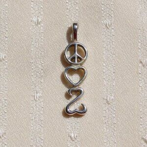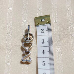 This Jane Seymour Open Hearts pendant from Kay Jewelers features the shapes of Peace, Love & Open Hearts and is made of .925 Sterling Silver. Perfect for your someone special or starter jewelry. This is pendant only no chain!