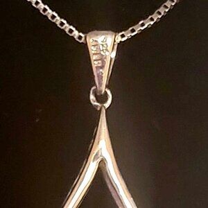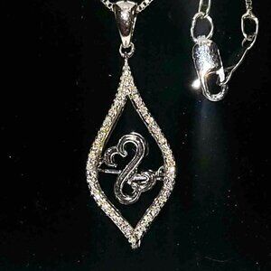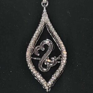 With a sophisticated shimmer, this sparkling fashion pendant from Open Hearts by Jane Seymour works effortlessly with her wardrobe. It features an open heart design decorated in diamonds. The design moves, catching light from every angle, inside of a teardrop shimmering with additional round diamonds. Styled in sterling silver, the necklace has a total diamond weight of 1/10 carat. This teardrop-framed style showcases a diamond-lined signature open-hearts design. Buffed to a brilliant lustre, this 0.10 ct. t.w. pendant suspends along an 18.0-inch box chain that secures with a lobster claw clasp.