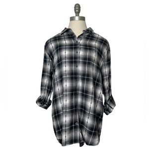 Jane and Delancey Black Stitch Button Down Collared Boyfriend Plaid Top Small