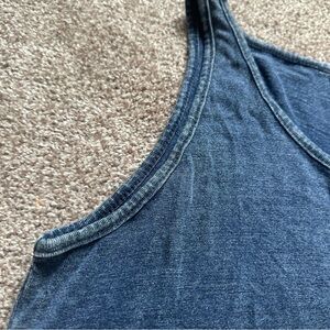 Casual scoop neck sleeveless blue dress by Jane and Delancey. Crafted from 100% cotton for a comfortable fit. Has pockets and side split hems. Preowned in very good condition, no holes or stains.