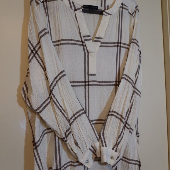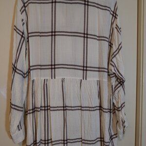 Jane and Delancey Brown Plaid Gauze Tunic Preloved - Very Good Condition