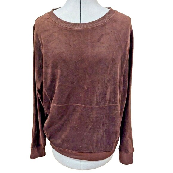 Keywords: velvet top, brown sweatshirt, long sleeve top, crew neck, casual top, loungewear, comfortable top, Jane and Delancey, pullover top, women's top, medium, fall fashion, winter fashion, cozy, everyday wear