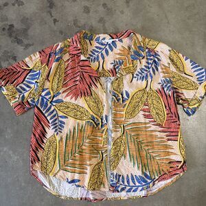 This Jane and Delancey Resort Wear Set includes a tropical beachy top and wide, loose-fitting pants in size small. The top features a V-neck and short sleeves, while the bottoms have a button closure and are machine washable. Perfect for various occasions like travel, activewear, weddings, parties, or casual outings, this set exudes a bohemian, casual style with a beach and botanical theme, ideal for the spring or fall seasons.