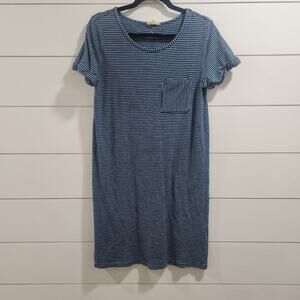 Jane and Delancey Anthropologie Blue White Striped Short Sleeve Knee Length T-Shirt Dress Small