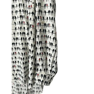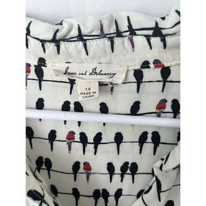Jane and Delancey White Black & Red Bird Long Sleeve Button Down 1X