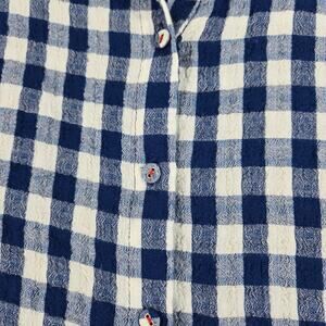 Jane and Delancey Wom 2XL Blue White Gingham Plaid Boxy Short Sleeve Blouse EUC Spring Summer Picnic Garden Party Casual Everyday College School Festival Travel Vacation Lightweight Soft Beachy Coastal Pool.