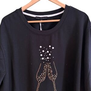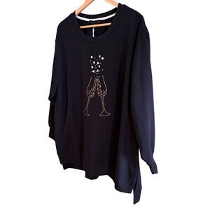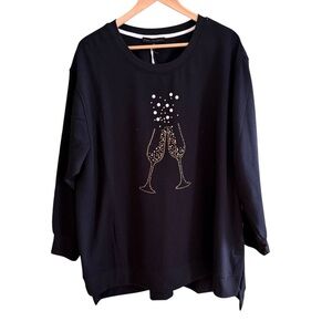 Jane and Delancey Women’s Sweater Black Rhinestones Glasses Size 2X