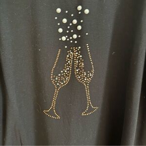 Stylish black top with a sparkling gold champagne glass design. Perfect for casual outings.