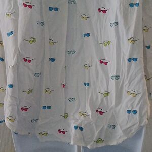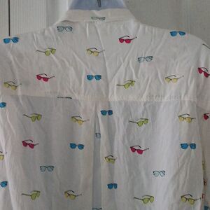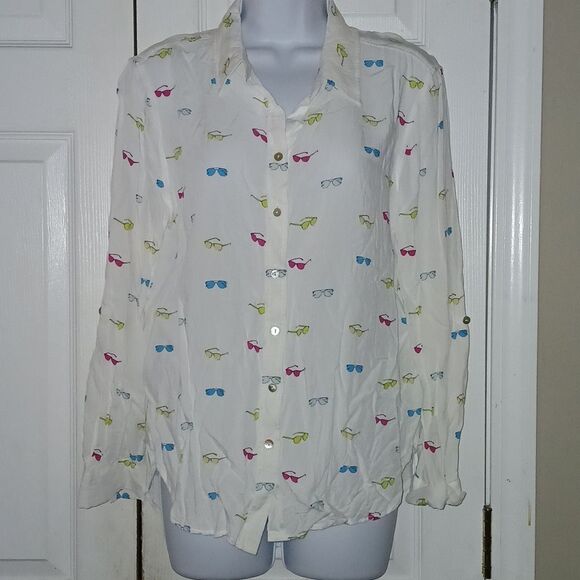 Jane and Delancey white multicolor sunglass print button down blouse Sz L