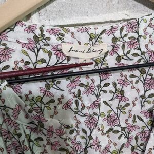 Jane and Delancy floral button down shirt white w/ pink flowers sz M