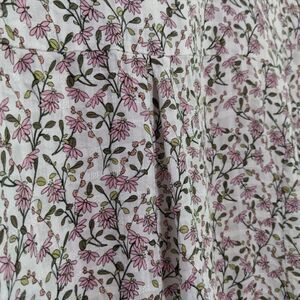 Jane and Delancy floral button down shirt white with pink flowers. Light pleating in the front, drapes very nicely. The material is very soft and light, 100% rayon.