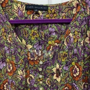 Jane and Delaney Peasant Blouse, Green Purple, Metallic Thread, Women's Size M