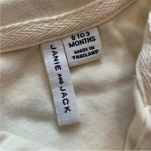 Adorable cream and green baby set by Jane and Jack. Perfect for a casual day or outing.