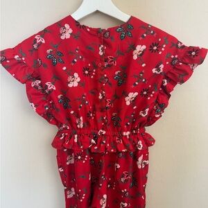 Jane and Jack Girls Bradbury Red Floral Ruffle Jumpsuit Size 6