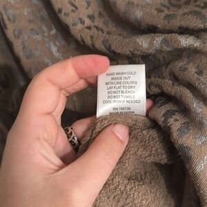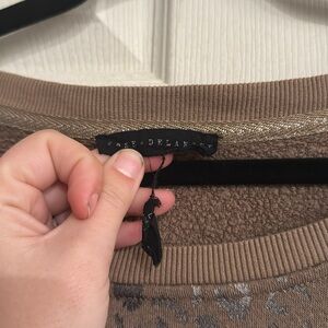 Besides the tag being cut off it is in new condition. It’s an oversized fit. Fits more like a large . Goes over your butt and has a wider neck .