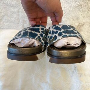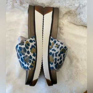 Jane and the Shoe Hannah sandals Blue & Gold print Platform Sole NWOB Sz-6.5. O