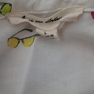 Jane and Delancey white multicolor sunglass print button down blouse Sz L