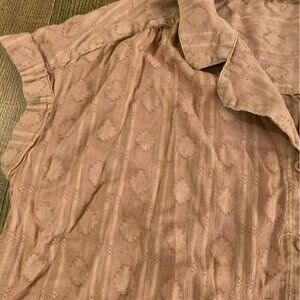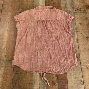 Blush pink short sleeve button-up top by Jane & Delancey. Features cuff sleeves and a trendy front tie. Ideal for a chic, casual look.