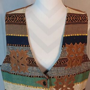 This earth tone patchwork Jane Ashley button down vest is a size 1X with a pit to pit measuring 21.5". Metal buttons. In excellent condition. All offers are welcome.