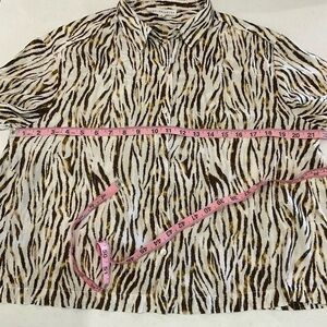 Jane+Delancey Zebra Print Top Brown Button Up Short Sleeve Blouse Women’s Size M