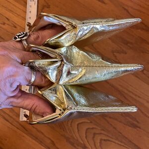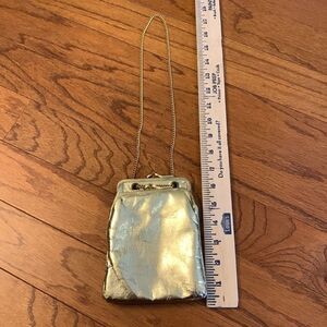 Jane Shilton genuine leather gold evening bag with three pockets & snap closure. Silk lining & snap closures. Vintage but never carried. Smoke free and pet free home