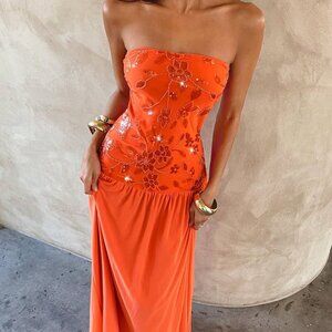 Janelle Orange Elegant Women's Sexy Sequins Embroidery Stitching maxi dress
