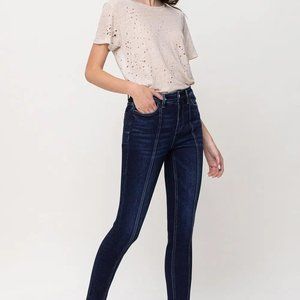 Skinny Dark Wash Jean // High Rise // Stem Hemline Detail
