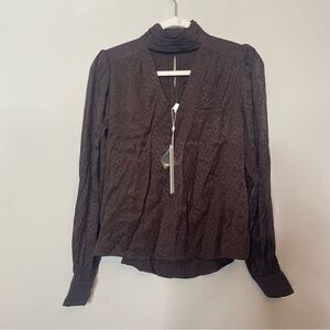 Janelle Mock Neck Cutout Top in Chocolate JONATHAN SIMKHAI STANDARD NWT XS