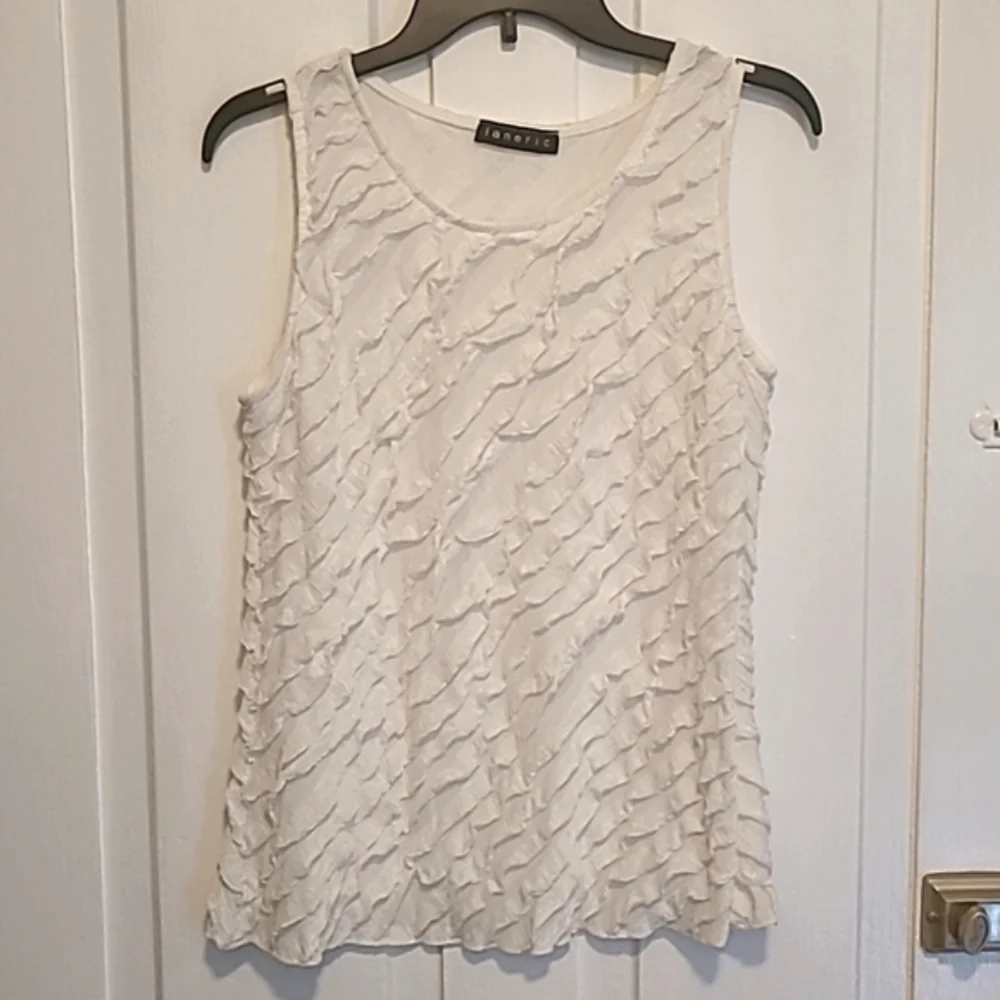 Size and materials tag was cut out so not 100% sure what it is made of or the size. See measurements below. I imagine it can go in the wash with Whites and on a gentle cycle or in a mesh laundry bag to protect it. I would lay flat to dry or do a gentle low heat to dry. I'm also guessing it's a medium.