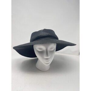 Janessa Leone Straw Sun Hat Women Black Size Medium Wide Brim