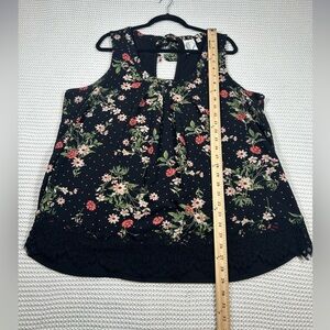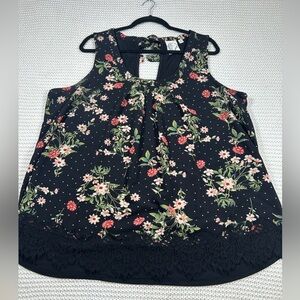 Janet Chung Black Floral Sleeveless Top with in the Back. Size 2X
