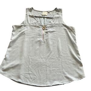 Janet Chung Light Blue Sleeveless Blouse Front Zip Woman Size Medium