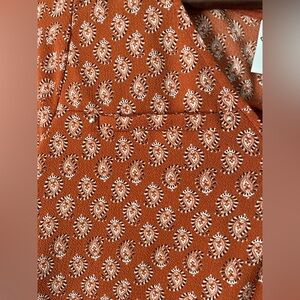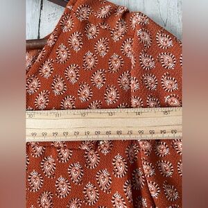Janet Chung Orange Abstract Print Blouse Gold Buttons Women's SZ Large