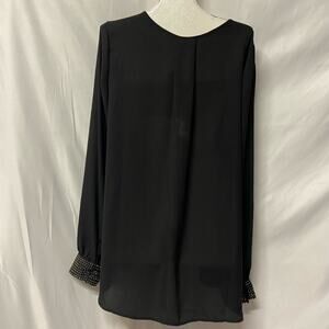 Janet Chung Top Shear Dark Black Sequin Studs Blouse Dressy Size L