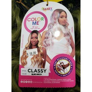 Janet Collection Olive Green Human Hair Blend 6" Deep Center Part Lace Front Wig