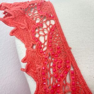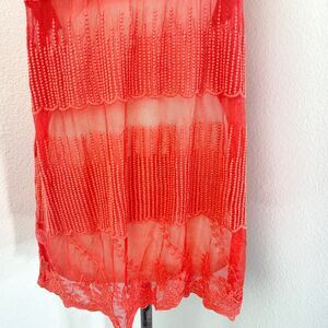 Janet Paris Orange Embroidered Mesh Top Tunic Large Studs Mesh Festival Boho