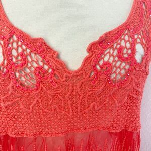 Janet Paris Orange Embroidered Mesh Top Tunic Large Studs Mesh Festival Boho Beach Fairy