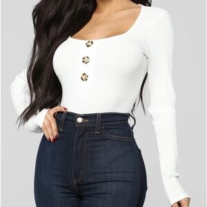 Janet Ribbed Button Bodysuit - Ivory