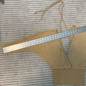 Tie back Elastic waist Tan with gold accents Size tag missing see measurements
