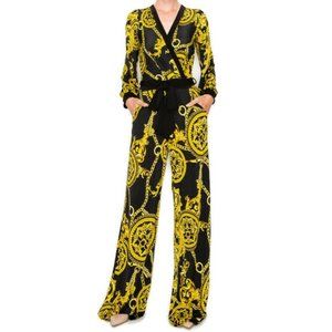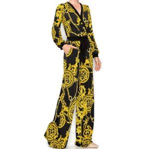 Black Gold Chain Bell Long Sleeve V-neck Jumpsuit