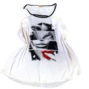 Janette Plus Graphic Lips Tank Top Heart Cutout in Back Contrast Black Trim 10i
