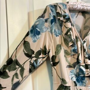 Janette Plus USA Floral Long Sleeve Wrap Midi Dress with Tie Front - Size 1X