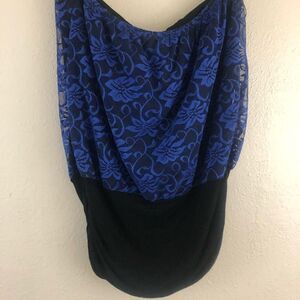 Janette Plus strapless Blue Lace Ruched side size 1XL. Pre-owned. Great condition