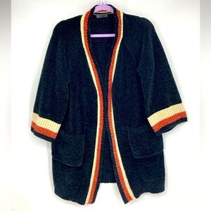 Janice Apparel Black Velour Open Front Longline Cardigan with Two Pockets One Size Approximately Measurement:Pit 24”/Length Sleeve from Pit 13”/Length 32” Very Soft ,Comfortable Pre-owned Gently Used Great Condition